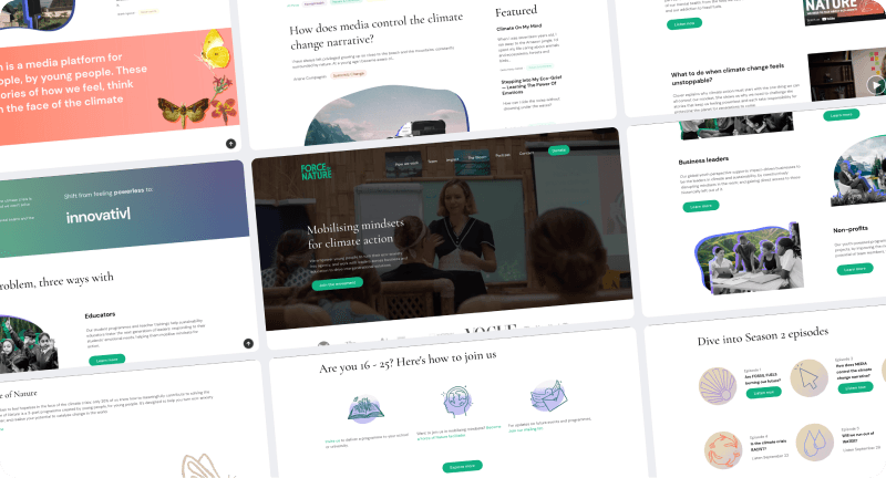 Redesigned Clover Hogan's non-profit Force of Nature's website that led to 4x more page views and 2x more inquiries